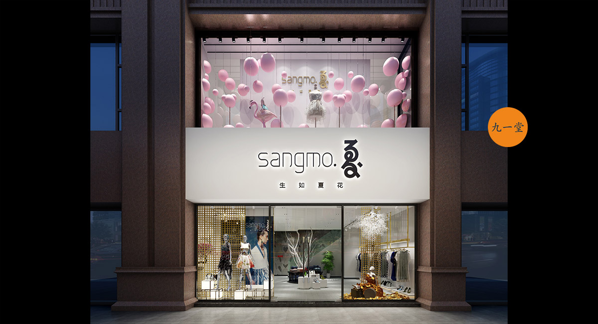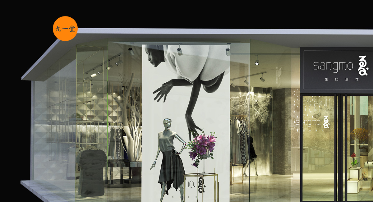 桑莫.夏是四川省本土女裝品牌,在樂山市已有多家分店,服裝多為韓式款式為主,自由隨意,個性、百搭,老店裝飾設計風格多以田園風結合當下的后現代風為主。缺乏時尚的氣息,雖然經營多年后但是品牌起色不是很大,迫切希望品牌再次包裝和亮相,此次新項目地址選在峨眉山最新的商業地產項目,憑借西南最大沃爾瑪的名氣的商場再次亮相展現自己的品牌。我們九韻一雅堂承接到甲方商業空間設計的委托后,從品牌定位,產品調性,消費群體定位, 品牌形象,VI設計,店面升級等服務板塊提高品牌形象,品牌的升級與重塑,商業空間設計的中心服務優勢,怎樣讓桑莫.夏品牌更時尚、更年輕化是我們商業空間設計考慮的要點,我們在標志上注入英文構思,放進空間,中心以“夏”字結合書法統籌文化來創造,書法結合英文的標志調配改造,再空間既有中國傳統文化又兼具時尚。空間把原來的原生態樹換造型后刷白倒掛,和黑色藝術玻璃形成鮮明的材質對比,讓傳統磕碰時尚,保留了客戶原來店想要的天然,再生態再創造。