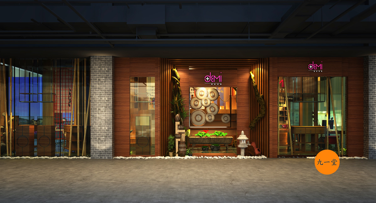 DEMI美容院的所有產品均采用韓國和日本最先進的護膚產品進口。產品與國內產品的最大區別在于品牌與眾不同。甲方是業內從事美容行業多年的人。選擇日式風格來裝飾自己的美容院并非偶然。一方面,大部分產品來自日本,另一方面,甲方非常喜歡日本風格的禪宗文化。成都九韻一雅堂的商業空間設計將使日本的枯山水景觀,一個個小小的風景的美化更具藝術性。整個空間非常精致和典雅,空間表現給人一種放松的感覺,而且緊湊和留白相互補充。九一堂商業空間設計將空間體驗設計發揮到極致。成都美容院的設計一直是九一堂的核心競爭力。門口的的景觀,以及踏腳石使用實木板制作,在外墻上繪制日本手繪,并在房間內建造一個假的二層,不僅增加了空間的樂趣性也添加了功能性的存儲空間。室內軟裝配櫻花?亞麻布?白色砂巖用于使產品在場景中顯示。除了空間體驗的設計,DEMI美容院還包括品牌形象的設計。極簡主義線條構成了標志的主體,體現了精致,修復和令人滿意的品牌內涵。
